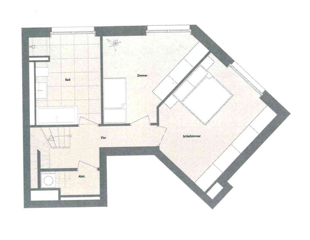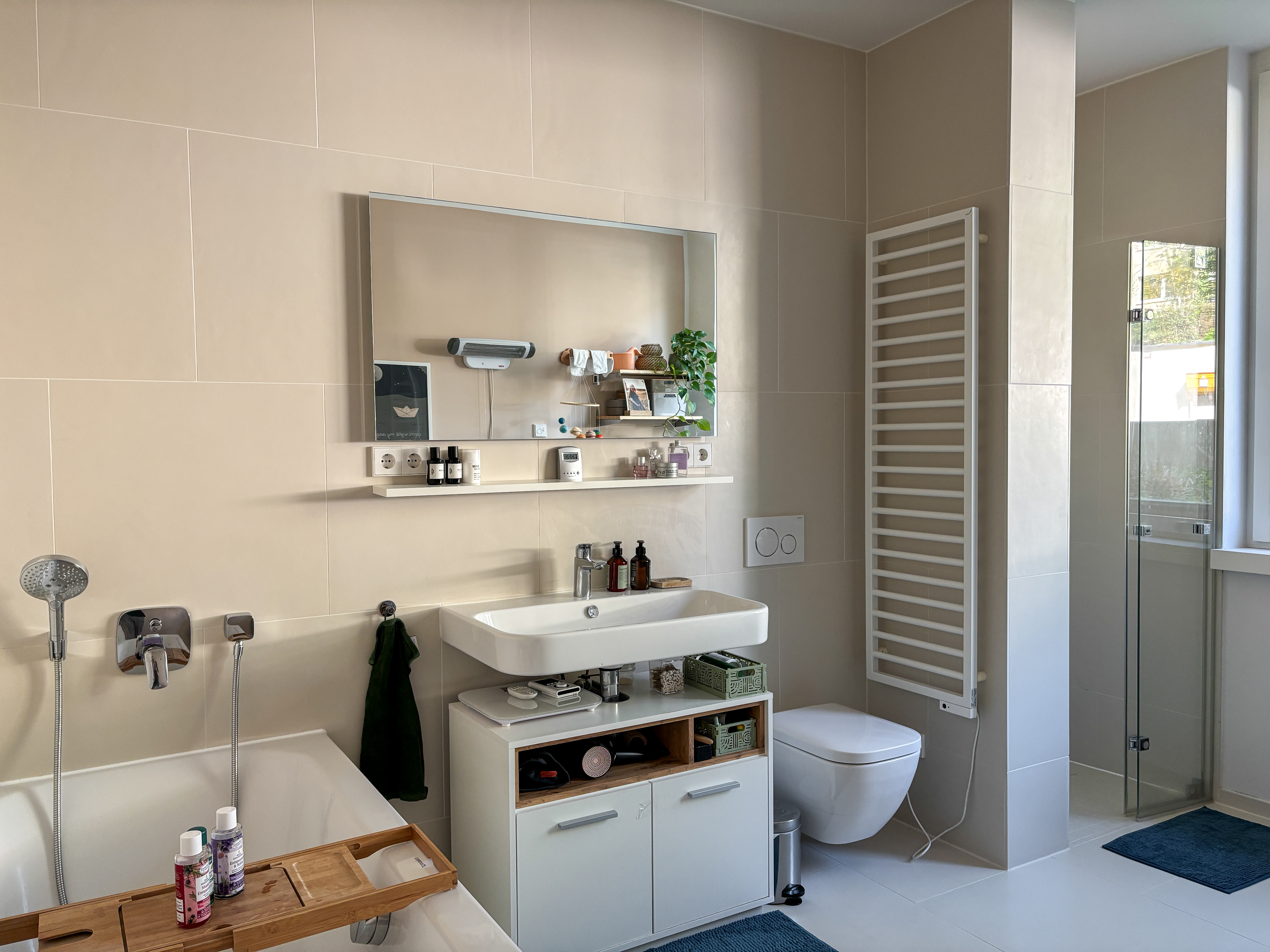 - Ausstattung des Bades Fenster, Badewanne, Dusche