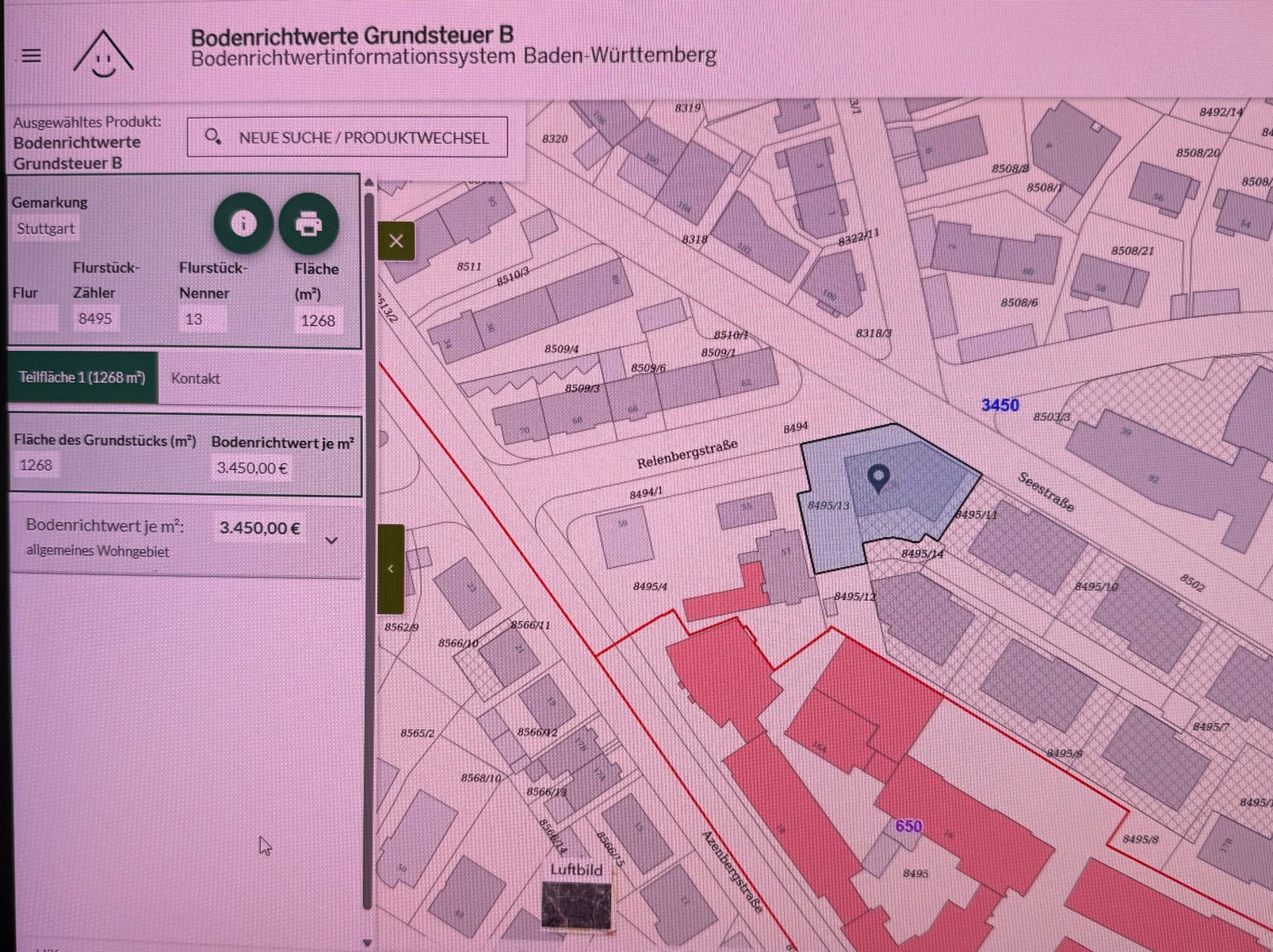 Zu weiteren Information, der Bodenrichtwert beträgt laut Boris-Tabelle in der Relenbergstraße 3.450 €/m²!
